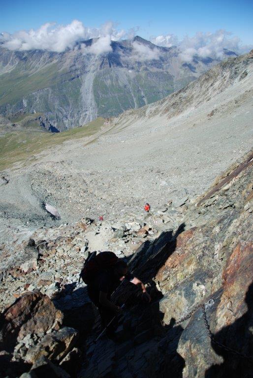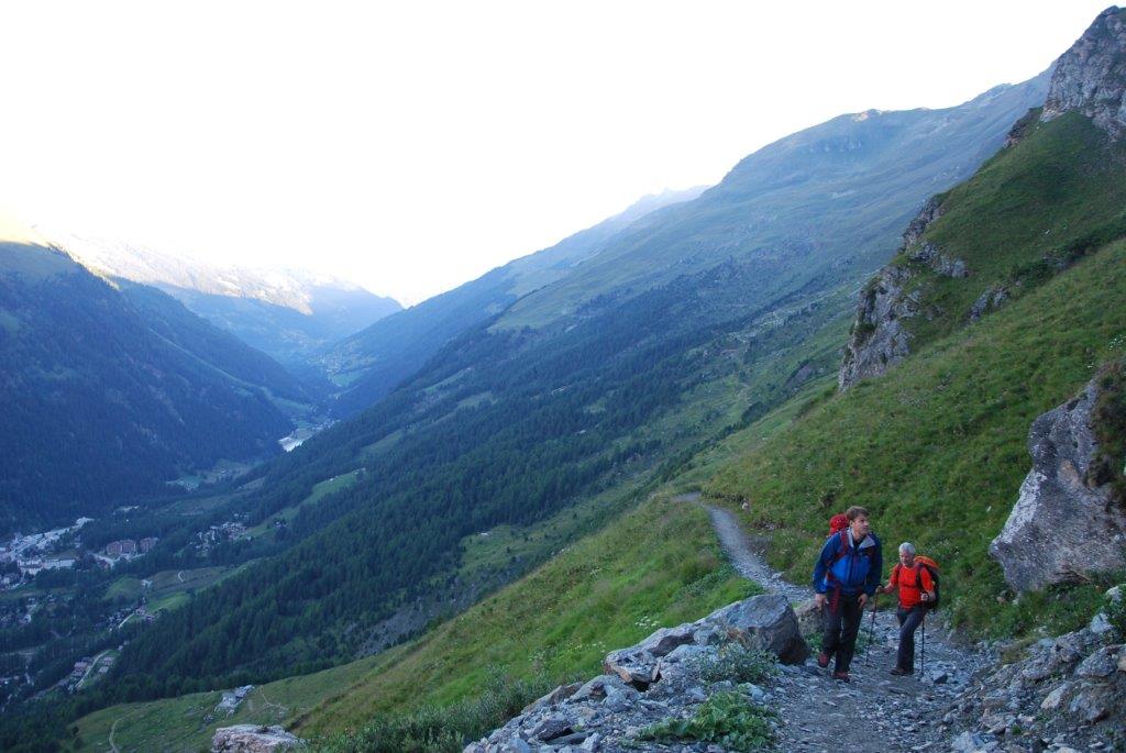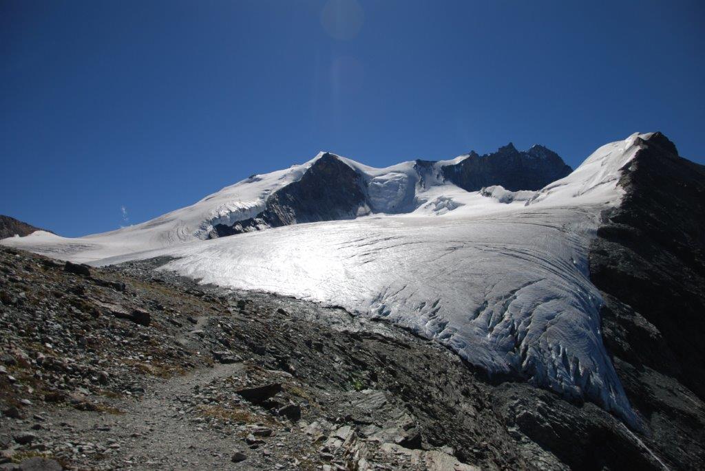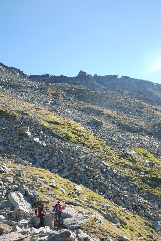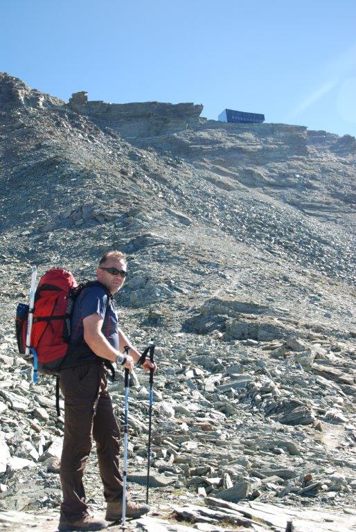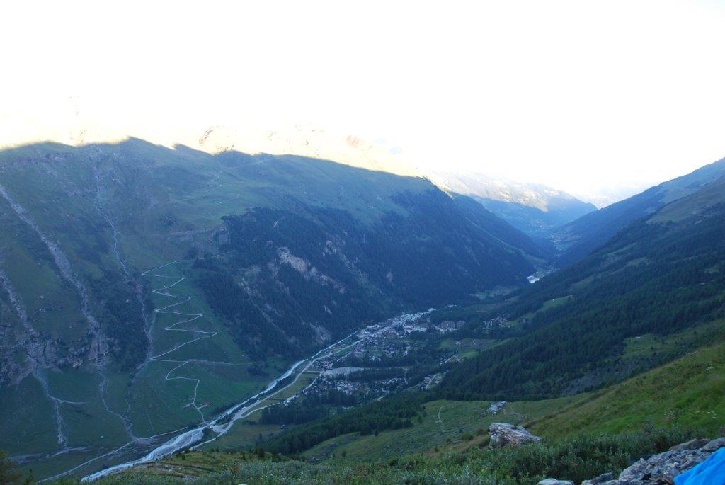 Llegamos a Zinal, el pueblo donde dejaríamos el vehículo y tras pasar la noche en una casa/pensión nos levantamos a las cinco de la mañana para la aproximación al refugio de Tracuit sobre la cota de tres mil metros desde donde intentaríamos la cumbre del Bishorn.