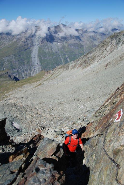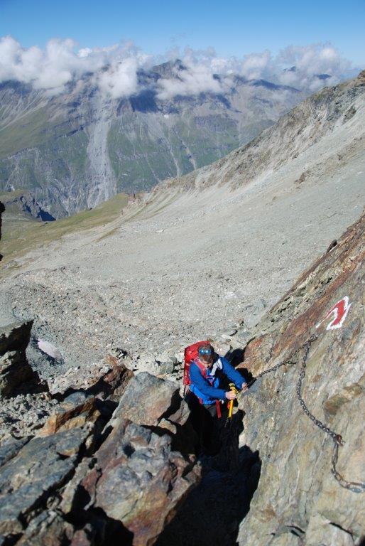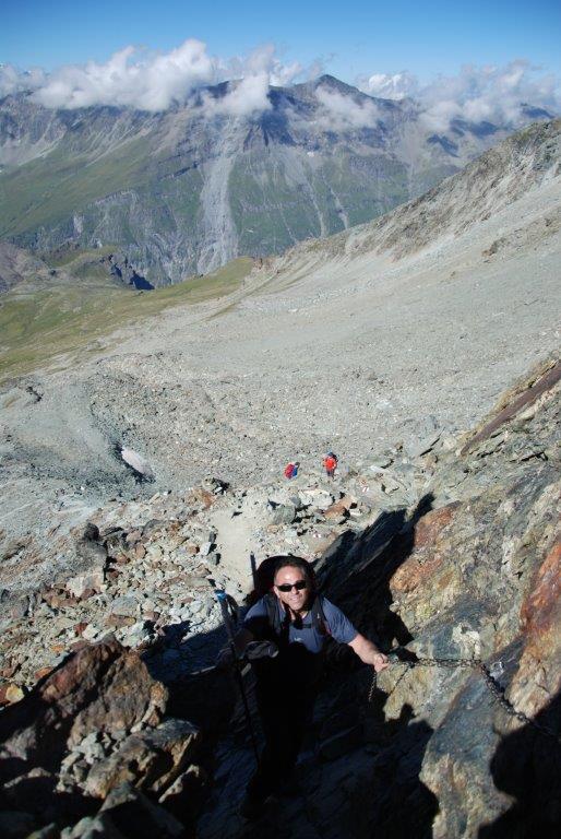 El último repecho para la cumbre del Bishorn tiene una pendiente bastante pronunciada, de hecho hay quien la sube encordado o con piolets. Unos italianos que lo vieron intentar subir a gatas, le lanzaron una cuerda para que pudiera subir y así hacer cima. Lo consiguió.