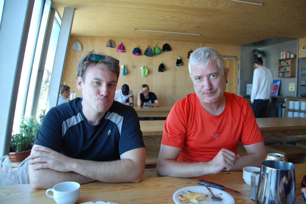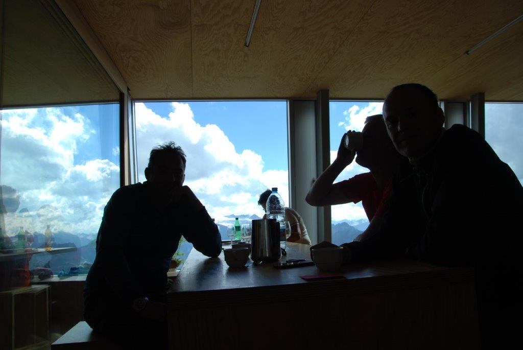 Una vez en el refugio. Todos compuestos y tomando un té buenísimo, no por el té, si no por el precio. No podía ser malo. En Suiza se conoce que todo es buenísimo, hasta las hamburguesas chamuscadas. Mis compañeros comenzaron a contar su periplo a la cima.