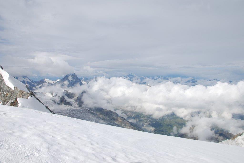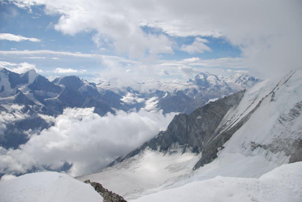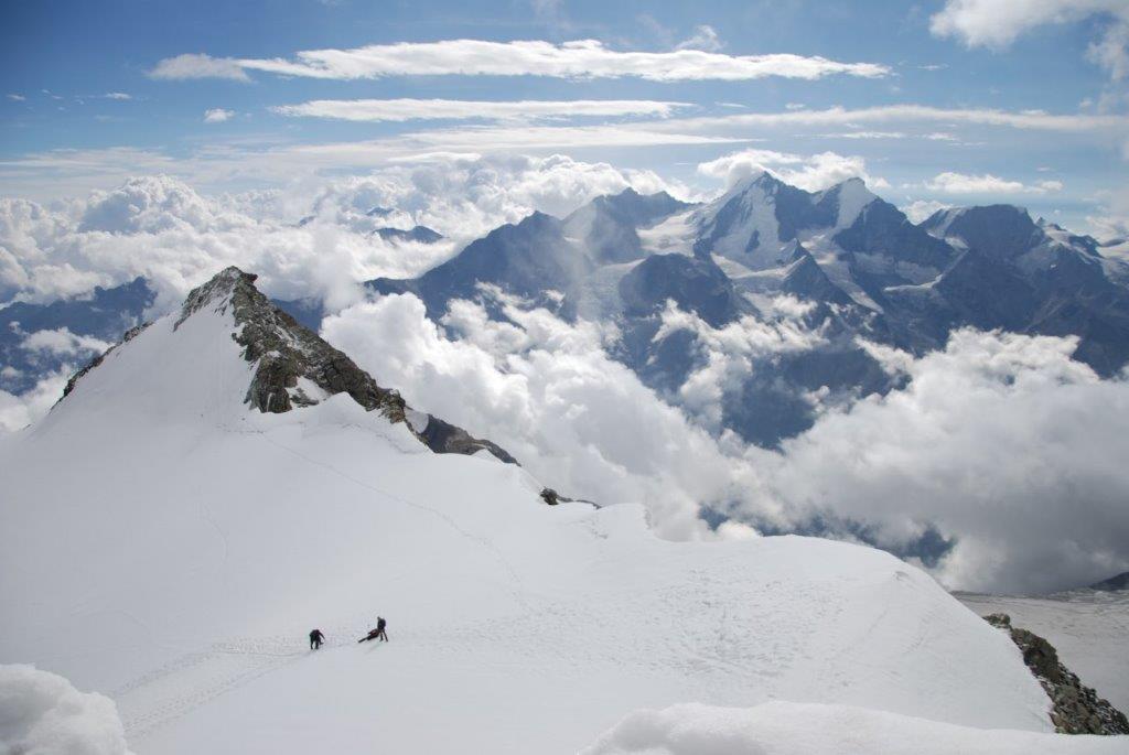 El Bishorn, en Suiza, no es un pico alto entre los cuatro miles (4.153 metros), no tiene especial dificultad, ni siquiera es un monte donde acaba la ruta pues sirve de tránsito a uno de los colosos de los Alpes Peninos, el Weisshorn de 4.506 metros. Un bellezón de aristas afiladas que cuando lo ves te preguntas como se las apañan para ascender hasta ahí. Al Bishorn, los suizos lo llaman «el pico de los señoritos».